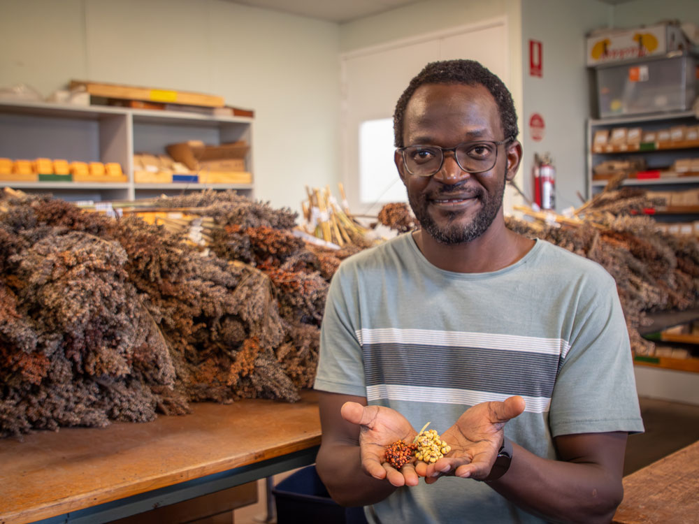 PhD candidate Daniel Otwani from the Queensland Alliance for Agriculture and Food Innovation and the ARC Centre of Excellence for Plant Success is analysing the diversity available within the sorghum germplasm to better understand the crop’s grain filling duration, the period between flowering and physiological maturity.